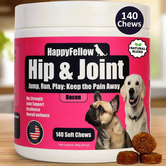 HappyFellow Hip and Joint Supplement for Dogs - Chondroitin Glucosamine for Dogs Dog Joint Supplement - Dog Vitamins and Supplements - 140 Soft Chews