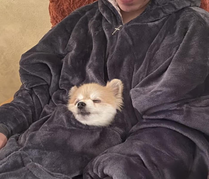 Our USB Heated Hooded Wearable Blanket keeps you warm anytime, anywhere, while the front pet pocket lets your furry friend enjoy the warmth with you 🐶🐱